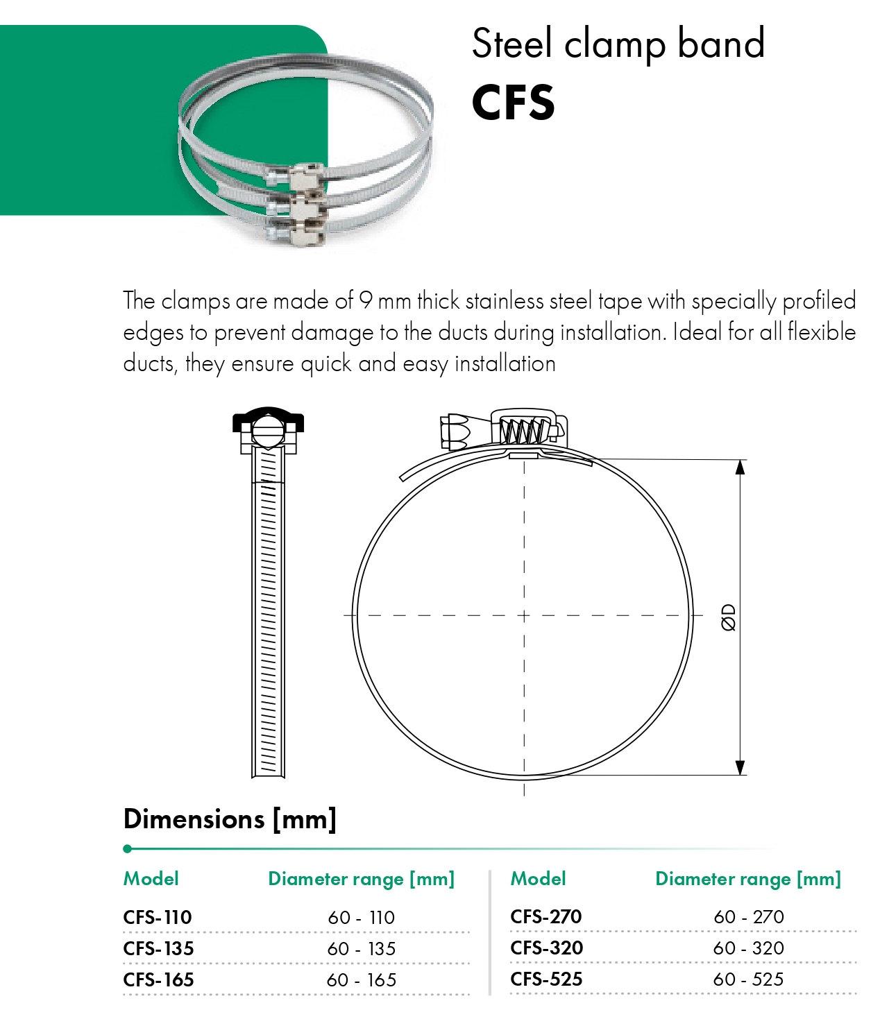 The clamps are made of 9 mm thick stainless steel tape with specially profiled edges to prevent damage to the ducts during installation.