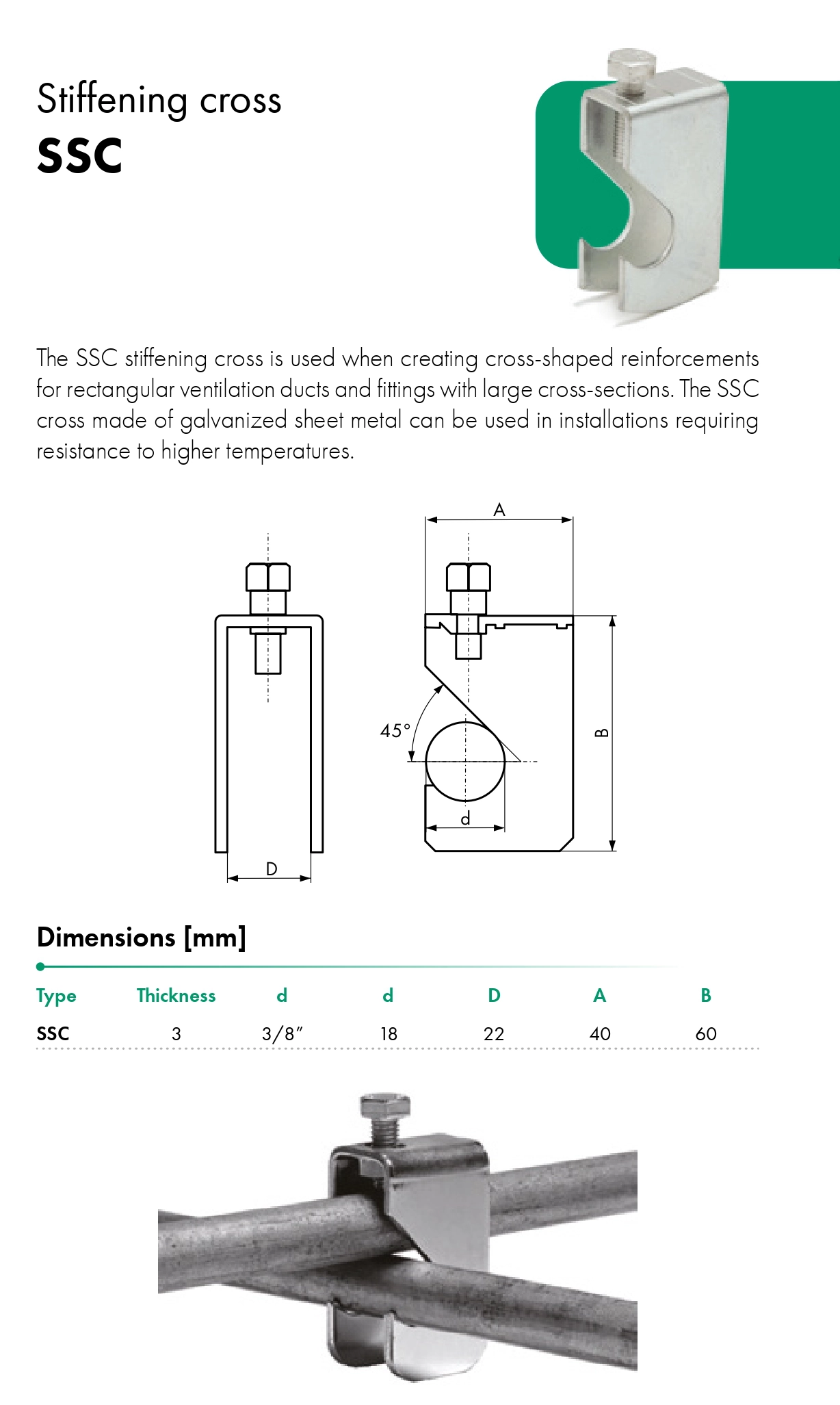 The SSC cross made of galvanized sheet metal can be used in installations requiring resistance to higher temperatures.